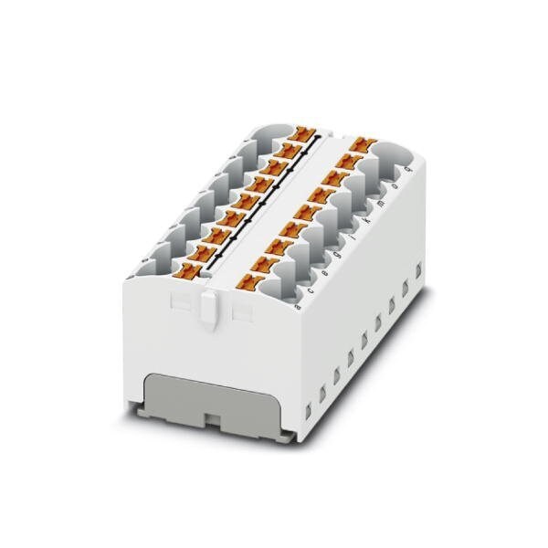 Distribution block bridged internally The blocks can be bridged with one another via the conductor shaft. For corresponding plug-in bridges see accessories nom. voltage: 450 V nominal current: 32 A connection method: Push-in connection number of connections: 18 cross