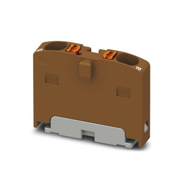 Distribution block Basic terminal block nom. voltage: 450 V nominal current: 17.5 A connection method: Push-in connection number of connections: 2 cross section: 0.14 mm - 2.5 mm AWG: 26 - 14 width: 4.2 mm height: 17.7 mm color: brown mounting type: for snappin