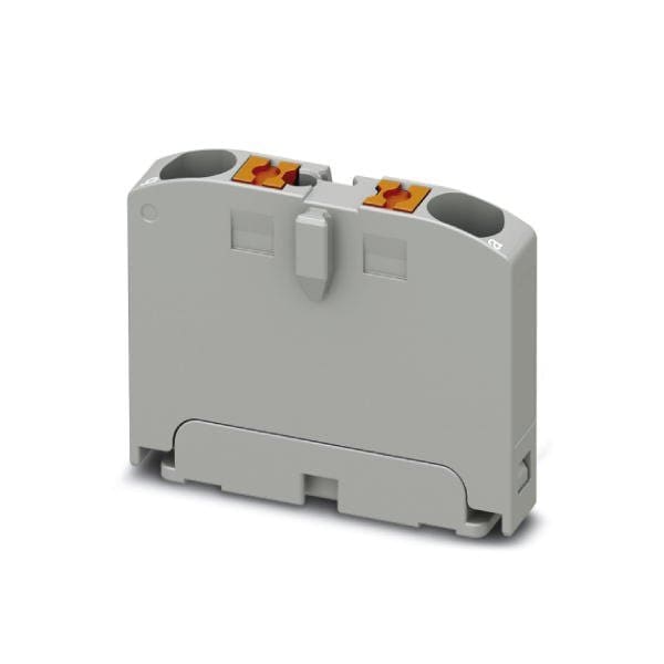 Distribution block Basic terminal block nom. voltage: 690 V nominal current: 24 A connection method: Push-in connection number of connections: 2 cross section: 0.14 mm - 4 mm AWG: 26 - 12 width: 5.2 mm height: 21.7 mm color: gray mounting type: for snapping ont