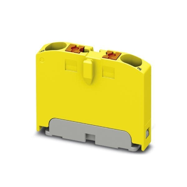 Distribution block Basic terminal block nom. voltage: 690 V nominal current: 24 A connection method: Push-in connection number of connections: 2 cross section: 0.14 mm - 4 mm AWG: 26 - 12 width: 5.2 mm height: 21.7 mm color: yellow mounting type: for snapping o