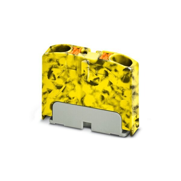 Distribution block Basic terminal block nom. voltage: 450 V nominal current: 32 A connection method: Push-in connection number of connections: 2 cross section: 0.2 mm - 6 mm AWG: 24 - 10 width: 21.7 mm height: 21.7 mm color: black/yellow mounting type: for snap