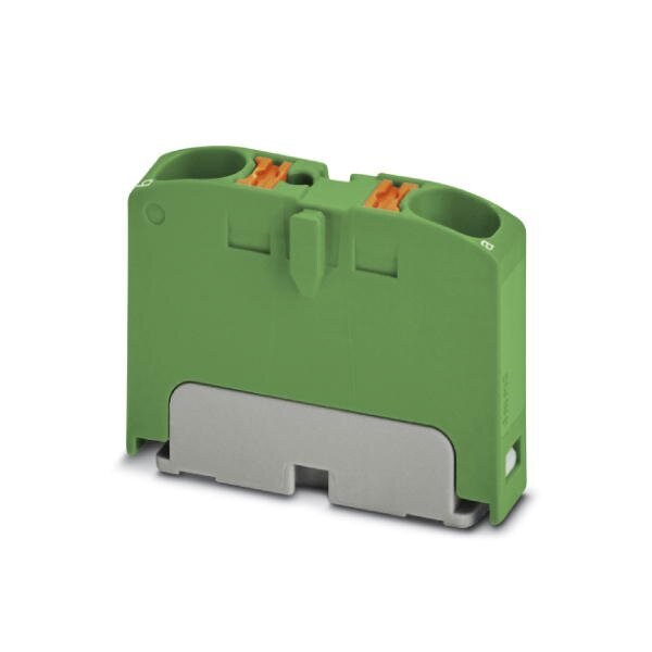 Distribution block Basic terminal block nom. voltage: 450 V nominal current: 32 A connection method: Push-in connection number of connections: 2 cross section: 0.2 mm - 6 mm AWG: 24 - 10 width: 6.2 mm height: 21.7 mm color: green mounting type: for snapping ont