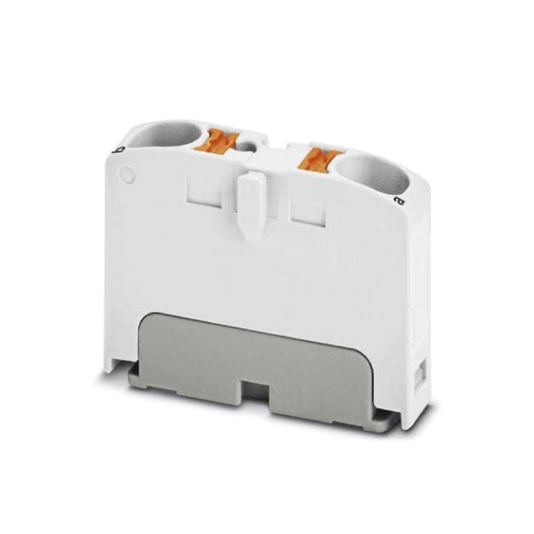 Distribution block Basic terminal block nom. voltage: 450 V nominal current: 32 A connection method: Push-in connection number of connections: 2 cross section: 0.2 mm - 6 mm AWG: 24 - 10 width: 6.2 mm height: 21.7 mm color: white mounting type: for snapping ont