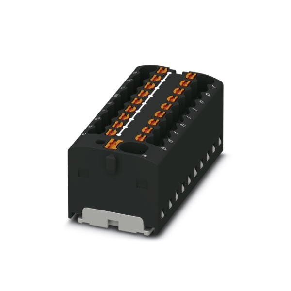 Distribution block Basic terminal block with supply nom. voltage: 450 V nominal current: 17.5 A connection method: Push-in connection Push-in connection number of connections: 19 cross section: 0.14 mm - 2.5 mm AWG: 26 - 14 width: 43.9 mm height: 17.7 mm color: