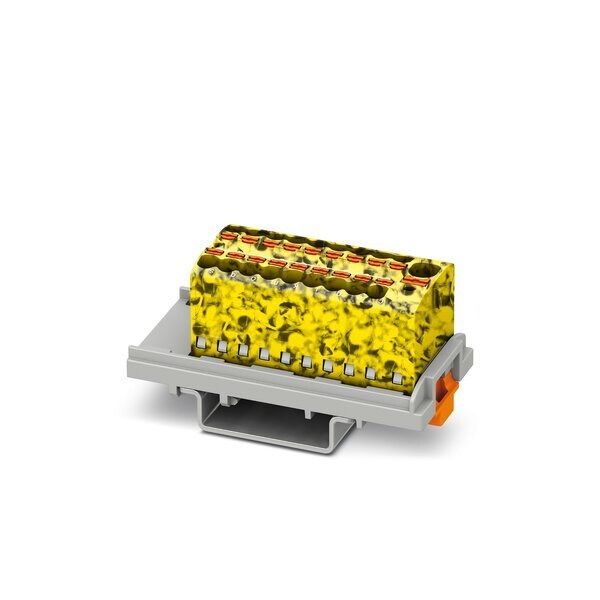 Distribution block nom. voltage: 500 V nominal current: 17.5 A connection method: Push-in connection Push-in connection number of connections: 19 cross section: 0.14 mm - 2.5 mm AWG: 26 - 14 width: 21.6 mm color: black/yellow mounting type: NS 35/7 5 NS 35/15