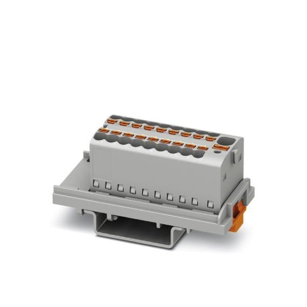 Distribution block nom. voltage: 500 V nominal current: 17.5 A connection method: Push-in connection Push-in connection number of connections: 19 cross section: 0.14 mm - 2.5 mm AWG: 26 - 14 width: 21.6 mm color: gray mounting type: NS 35/7 5 NS 35/15