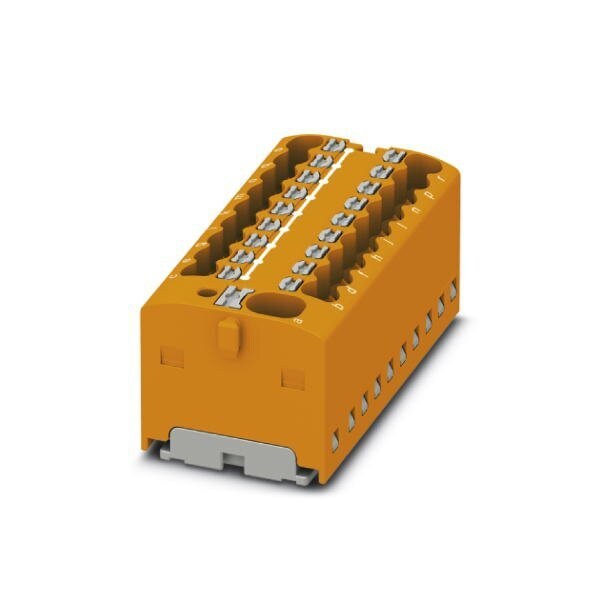 Distribution block Basic terminal block with supply nom. voltage: 450 V nominal current: 17.5 A connection method: Push-in connection Push-in connection number of connections: 19 cross section: 0.14 mm - 2.5 mm AWG: 26 - 14 width: 43.9 mm height: 17.7 mm color: