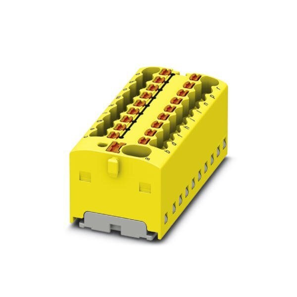Distribution block Basic terminal block with supply nom. voltage: 450 V nominal current: 17.5 A connection method: Push-in connection Push-in connection number of connections: 19 cross section: 0.14 mm - 2.5 mm AWG: 26 - 14 width: 43.9 mm height: 17.7 mm color: