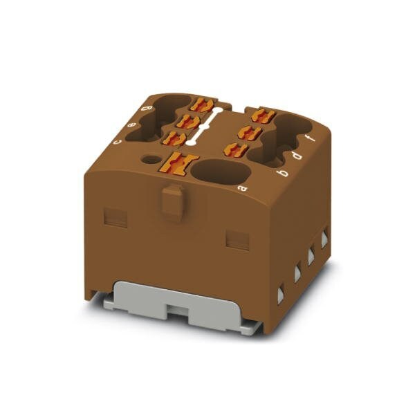 Distribution block Basic terminal block with supply nom. voltage: 450 V nominal current: 17.5 A connection method: Push-in connection Push-in connection number of connections: 7 cross section: 0.14 mm - 2.5 mm AWG: 26 - 14 width: 19 mm height: 17.7 mm color: br