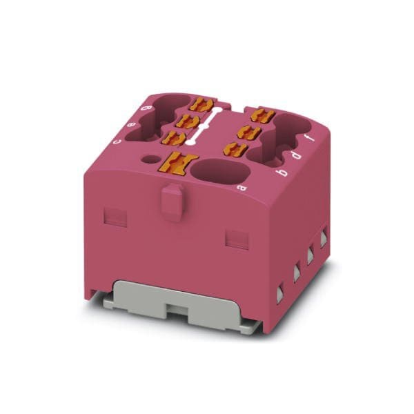 Distribution block Basic terminal block with supply nom. voltage: 450 V nominal current: 17.5 A connection method: Push-in connection Push-in connection number of connections: 7 cross section: 0.14 mm - 2.5 mm AWG: 26 - 14 width: 19 mm height: 17.7 mm color: pi