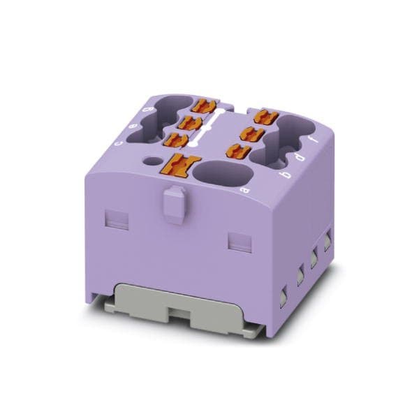 Distribution block Basic terminal block with supply nom. voltage: 450 V nominal current: 17.5 A connection method: Push-in connection Push-in connection number of connections: 7 cross section: 0.14 mm - 2.5 mm AWG: 26 - 14 width: 19 mm height: 17.7 mm color: vi