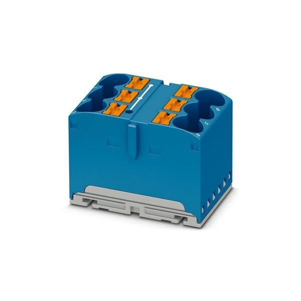 Distribution block bridged internally nom. voltage: 450 V nominal current: 57 A connection method: Push-in connection number of connections: 6 cross section: 0.5 mm - 16 mm AWG: 20 - 6 width: 36 mm height: 25.1 mm color: blue mounting type: for snapping onto a