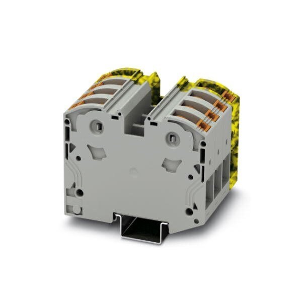 High-current terminal block Blocked nom. voltage: 1000 V nominal current: 125 A connection method: Power-Turn connection number of connections: 8 number of positions: 4 cross section: 2.5 mm - 35 mm AWG: 12 - 2 width: 64 mm color: gray/black-yellow mounting type: NS 35/