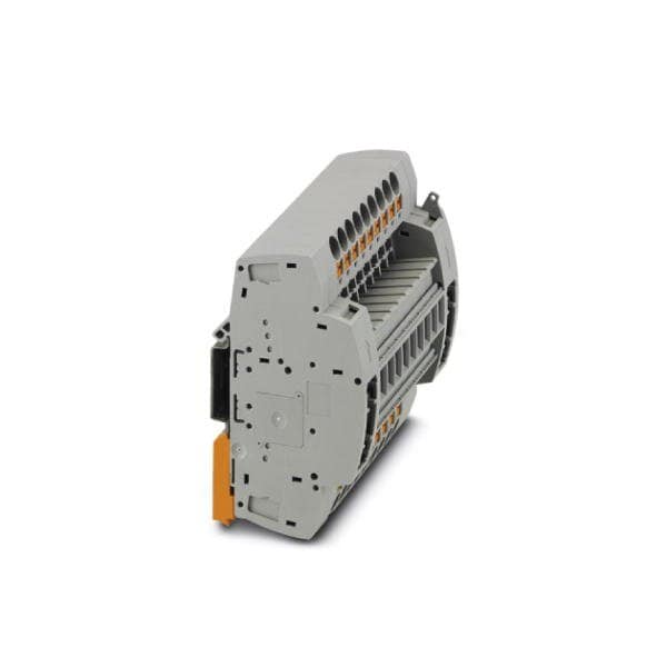 Test terminal strip Connection method: Push-in connection Number of positions: 9 Cross section: 0.5 mm - 10 mm AWG: 20 - 8 Width: 106 mm Height: 56.5 mm Color: gray Mounting type: DIN rail mounting