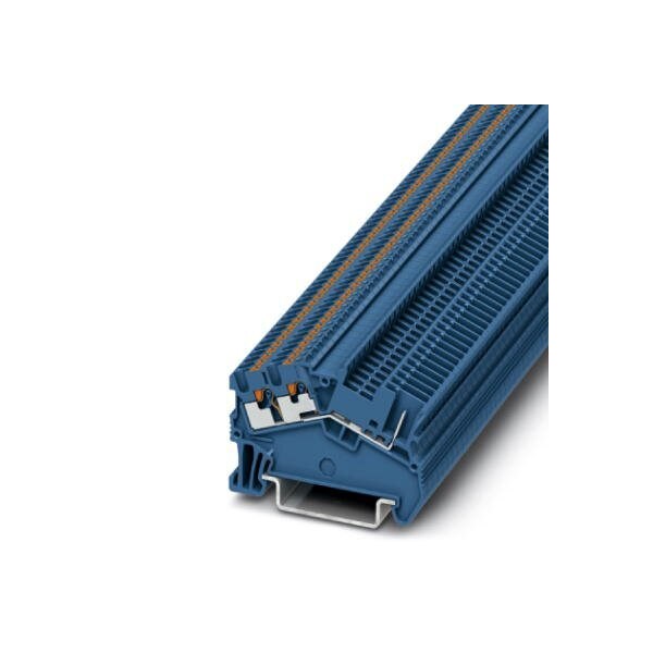 Feed-through terminal block nom. voltage: 500 V nominal current: 17.5 A connection method: Push-in / plug connection number of connections: 3 number of positions: 1 cross section: 0.14 mm - 1.5 mm AWG: 26 - 14 width: 3.5 mm height: 37 mm color: blue mounting type: NS 35