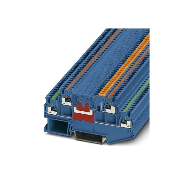 Knife disconnect terminal block Connection type: Push-in connection Cross section: 0.14 mm - 1.5 mm AWG: 26 - 14 Nominal current: 9 A Nominal voltage: 400 V Length: 86 mm Width: 3.5 mm Color: blue Assembly: NS 35/7 5 NS 35/15