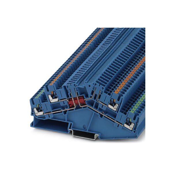 Disconnect terminal block double level with angled contour and two disconnect points nom. voltage: 400 V nominal current: 20 A connection method: Push-in connection cross section: 0.14 mm - 4 mm AWG: 26 - 12 length: 127.5 mm width: 5.2 mm color: blue mounting: NS 35/7 5