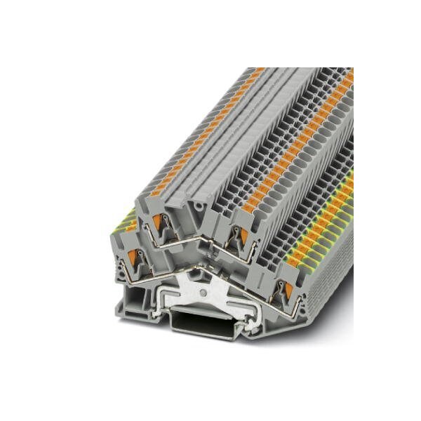 Protective conductor double-level terminal block Cross section: 0.14 mm - 4 mm AWG: 26 - 12 Connection type: Push-in connection Width: 5.2 mm Color: gray Mounting type: NS 35/7 5 NS 35/15