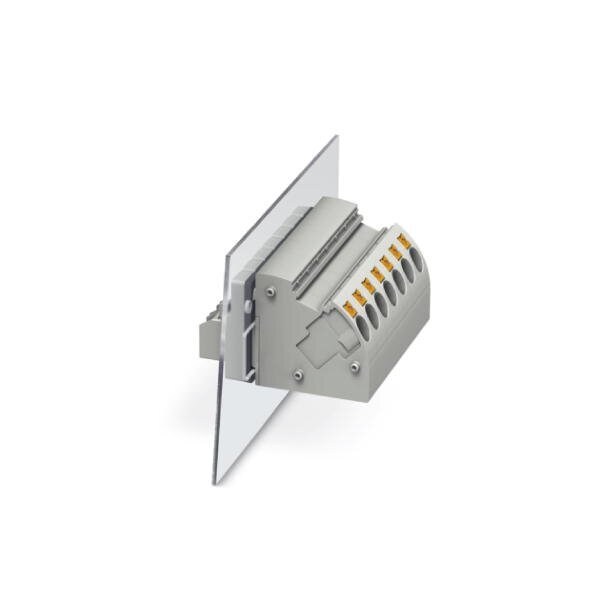 Panel feed-through terminal block Connection method: Push-in connection Slip-on connection Load current : 18 A Cross section: 0.2 mm - 4 mm AWG 24 - 12 Width: 8.1 mm Color: gray