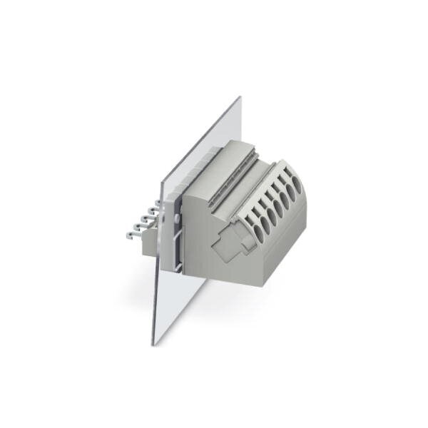 Panel feed-through terminal block Connection method: Push-in connection Solder connection Load current : 32 A Cross section: 0.2 mm - 4 mm AWG 24 - 12 Width: 8.1 mm Color: gray