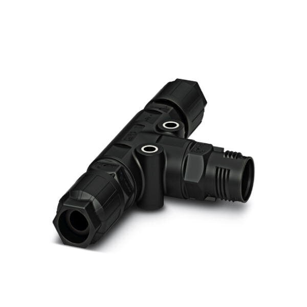 T distributor QUICKON connection number of positions: 2+PE 0.5 mm ... 1.5 mm 690 V 17.5 A black With two QUICKON nuts cable diameter range: 5 mm ... 9.5 mm