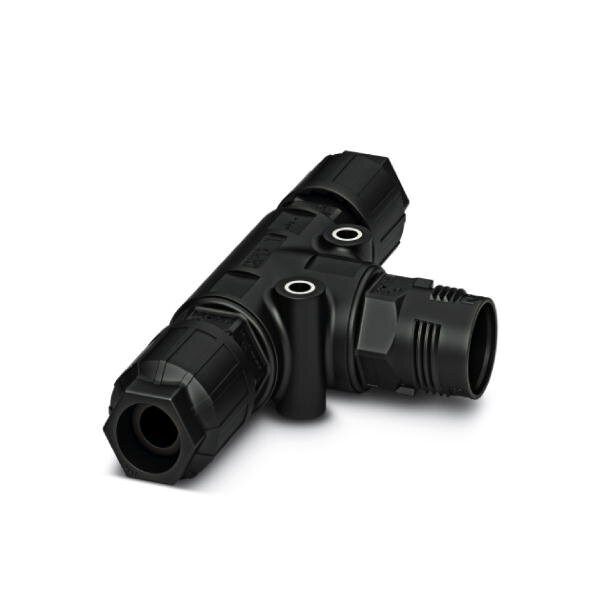 T distributor QUICKON connection number of positions: 4+PE 0.5 mm ... 1.5 mm 690 V 17.5 A black With two QUICKON nuts cable diameter range: 6 mm ... 10 mm