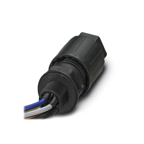 Panel feed-through QUICKON connection number of positions: 4+PE 1 mm ... 2.5 mm 690 V 20 A black with QUICKON nut cable diameter range: 9 mm ... 16 mm assembly thread: M25 Single wires welded-on 2.5 mm wires cut flat at the end cable length: 1 m