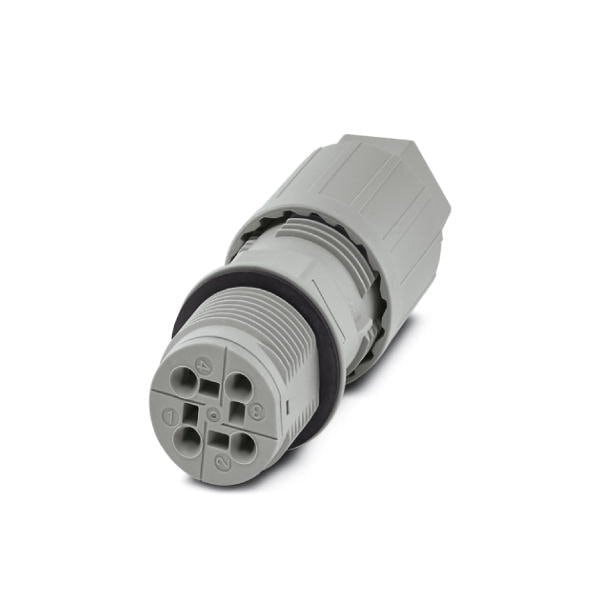 Panel feed-through QUICKON connection number of positions: 4 1 mm ... 2.5 mm 690 V 20 A gray with QUICKON nut cable diameter range: 9 mm ... 14 mm assembly thread: M25 Push-in connection 2.5 mm