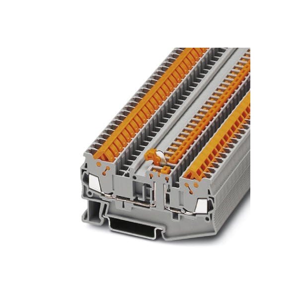 Knife disconnect terminal block nom. voltage: 400 V nominal current: 17.5 A connection method: Quick connection cross section: 0.25 mm - 1.5 mm AWG: 24 - 16 length: 76.4 mm width: 5.2 mm color: gray mounting: NS 35/7 5 NS 35/15