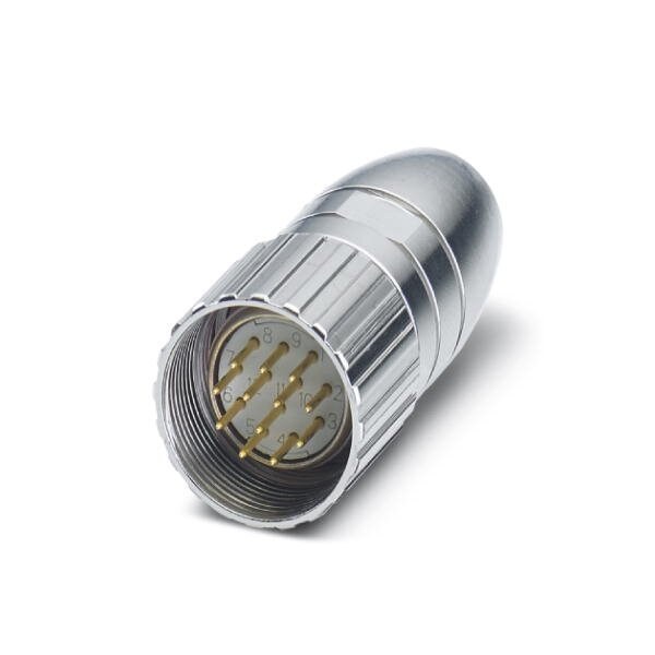 Cable connector straight shielded: yes Screw locking M23 Number of positions: 12 Type of contact: Male connector Solder connection Cable diameter: 7.5 mm ... 9.5 mm