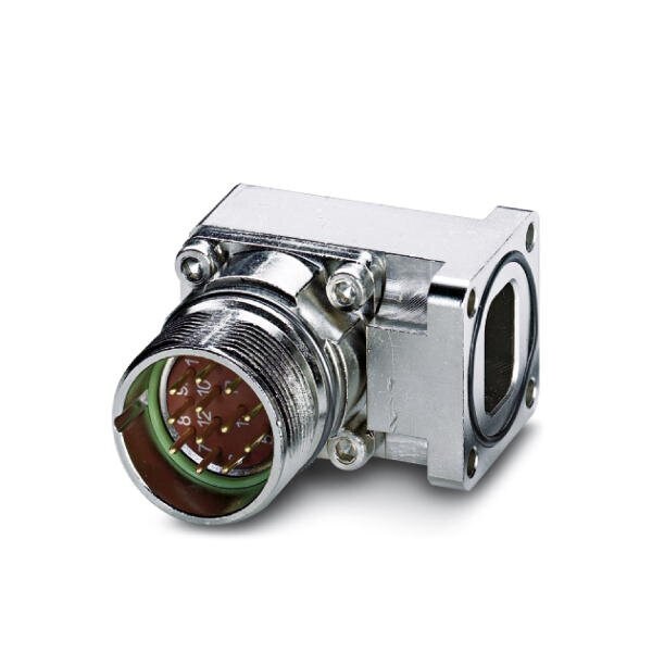 Device connector front mounting angled fixed Screw locking M23 number of positions: 12 type of contact: Pin Axial O-ring 4x 3.2 shielded: yes flange dimensions: 26 mm x 26 mm degree of protection: IP67 number of positions: 12 connection method: Crimp connect