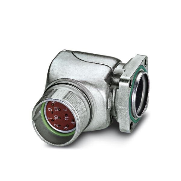 Device connector front mounting angled rotatable Screw locking M23 number of positions: 17 type of contact: Socket Axial O-ring 4x 3.2 shielded: yes flange dimensions: 28 mm x 28 mm degree of protection: IP67 number of positions: 17 connection method: Crimp