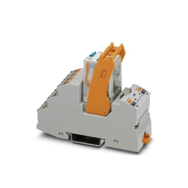 Pre-assembled relay module with Push-in connection consisting of: relay base power contact relay with additional hard gold plating and retaining bracket. Contact type: 4 changeover contacts. Input voltage: 24 V DC