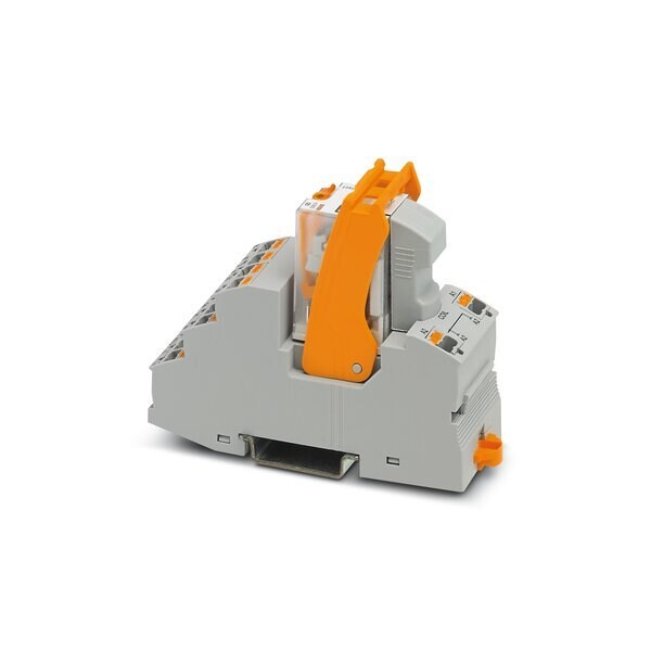 Pre-assembled relay module with push-in connection consisting of: relay base power contact relay plug-in display/suppressor module and retaining bracket. Contact type: 2 PDTs. Input voltage: 120 V AC