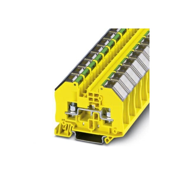 Ground terminal block with bolt connection technology and transparent safety contact hood cross section: 0.1 - 6 mm AWG: 26 - 10 width 16.3 mm color: green-yellow