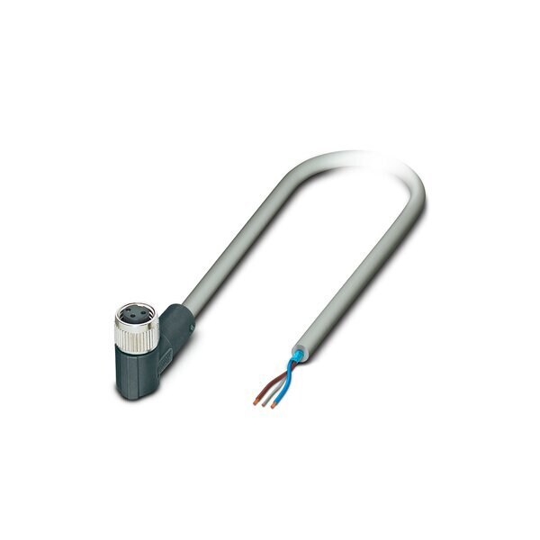 Sensor/actuator cable 3-position PVC gray shielded free cable end on Socket angled M8 cable length: 2 m Foil shielding plus drain wire