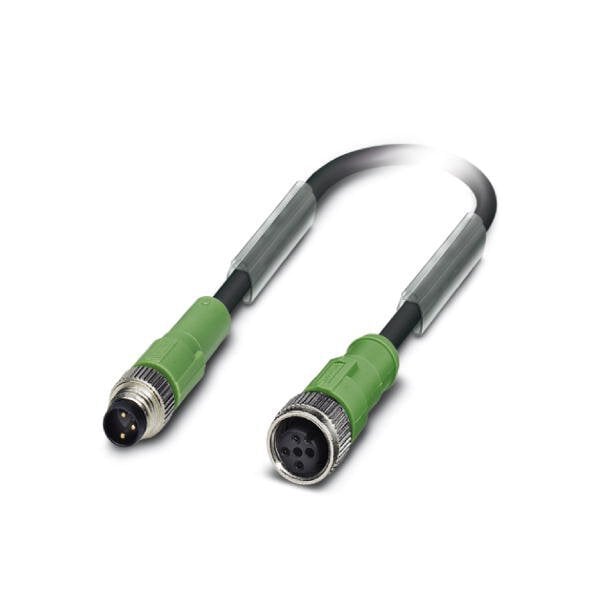 Sensor/actuator cable 3-position PUR halogen-free black-gray RAL 7021 Plug straight M8 on Socket straight M12 coding: A cable length: 0.6 m