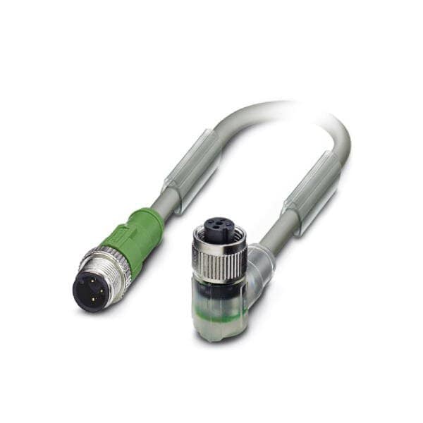 Sensor/actuator cable 3-position PUR halogen-free resistant to welding sparks highly flexible gray RAL 7001 Plug straight M12 coding: A on Socket angled M12 coding: A with 2 LEDs cable length: 1.5 m for robots and drag chains