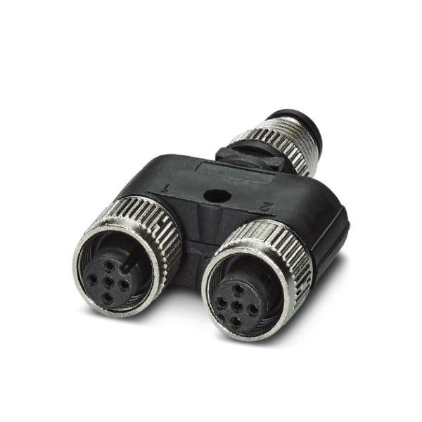 Y distributor 4-position Plug straight M12 A-coded on Socket straight M12 A-coded PIN 2+4 bridged and Socket straight M12 A-coded PIN 2+4 bridged