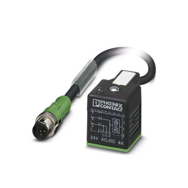 Sensor/actuator cable 3-pos. PUR halogen-free RAL 7021 black-gray straight M12 SPEEDCON plug to valve connector A with 1 LED connected to varistor cable length: 0.5 m