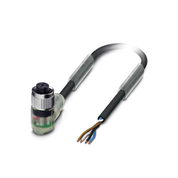 Sensor/Actuator cable 4-position PUR black-gray RAL 7021 free cable end on Socket angled M12 A-coded with 3 LEDs Cable length: 10 m