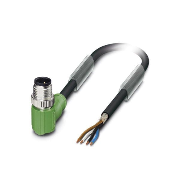 Sensor/actuator cable 4-position PUR halogen-free black-gray RAL 7021 shielded Plug angled M12 coding: A on free cable end cable length: 10 m