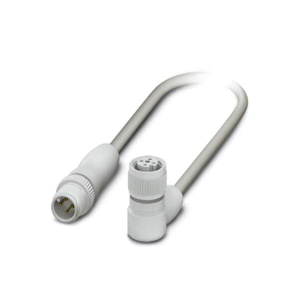 Sensor/actuator cable 4-position PP-EPDM halogen-free gray RAL 7035 Plug straight M12 coding: A on Socket angled M12 coding: A cable length: 1.5 m Hygienic design with plastic knurl