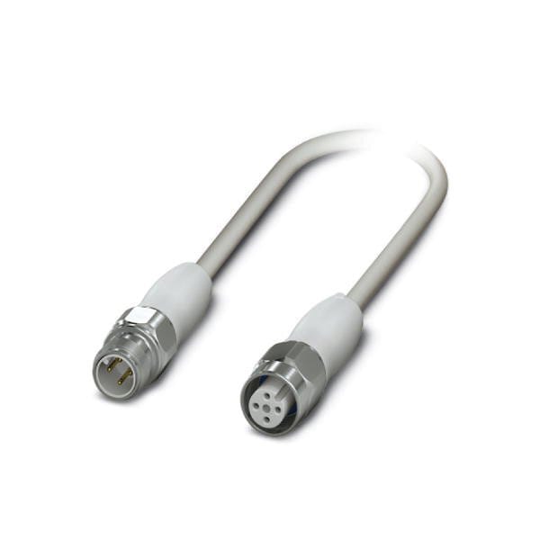 Sensor/actuator cable 4-position PP-EPDM halogen-free gray RAL 7035 shielded Plug straight M12 coding: A on Socket straight M12 coding: A cable length: 3 m Hygienic design with high-grade steel knurl