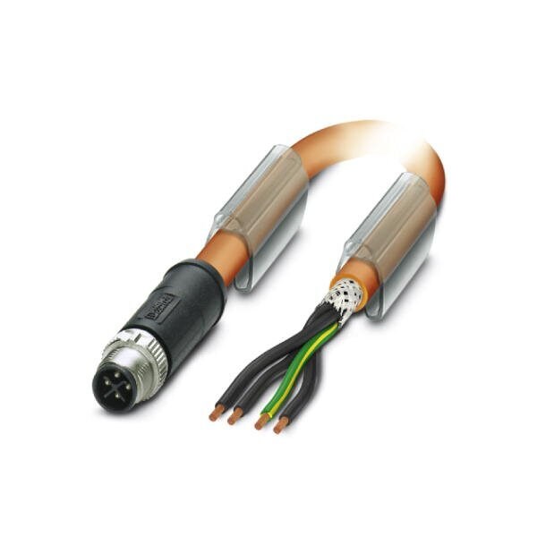 Power cable 4-position PUR halogen-free orange RAL 2003 shielded Advanced Shielding Technology Plug straight M12 coding: S on free cable end cable length: 3 m for AC current up to 12 A/690 V