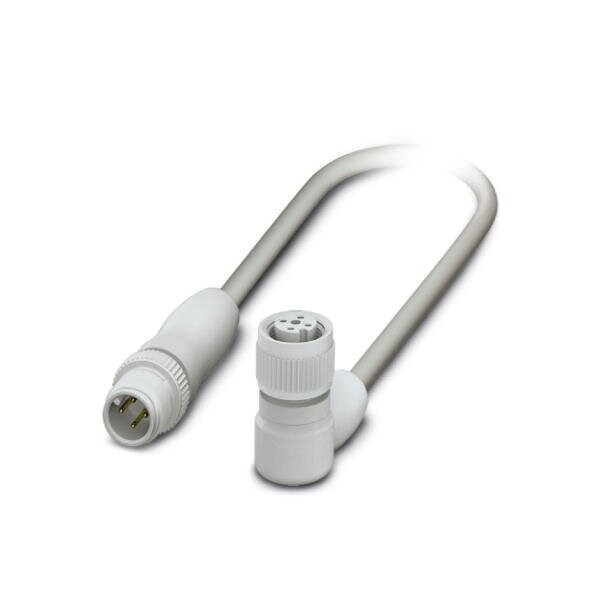 Sensor/actuator cable 4-position PP-EPDM halogen-free gray RAL 7035 Plug straight M12 coding: A on Socket angled M12 coding: A with 3 LEDs cable length: 0.3 m Hygienic design with plastic knurl