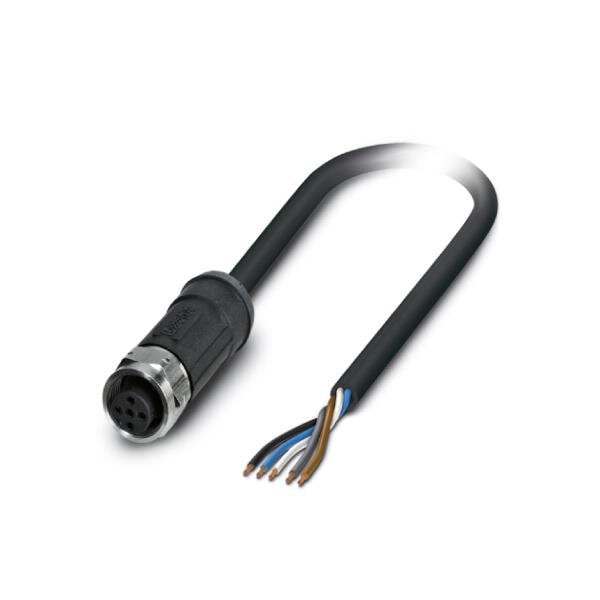 Sensor/actuator cable 5-position PE-X halogen-free black-gray RAL 7021 free cable end on Socket straight M12 coding: A cable length: 10 m for outdoor applications with high-grade steel knurl