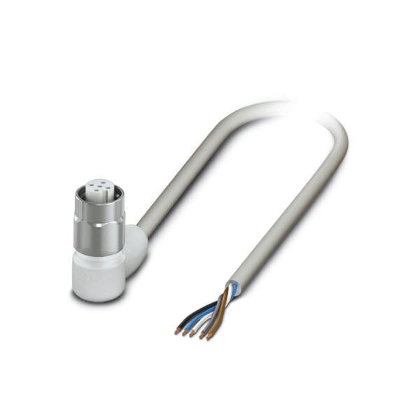 Sensor/actuator cable 5-position PP-EPDM halogen-free gray RAL 7035 free cable end on Socket angled M12 coding: A with 3 LEDs cable length: 10 m Hygienic design with high-grade steel knurl
