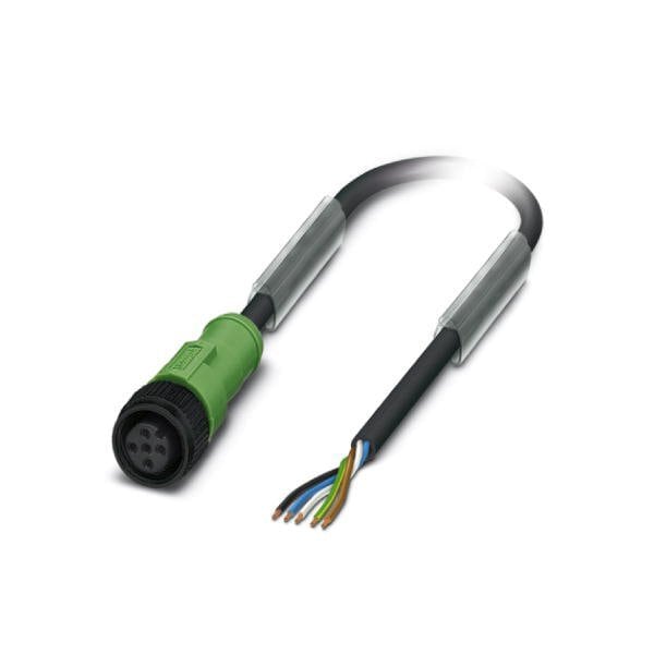 Sensor/actuator cable 5-position PUR halogen-free black-gray RAL 7021 free cable end on Socket straight M12 coding: A cable length: 10 m with plastic knurl