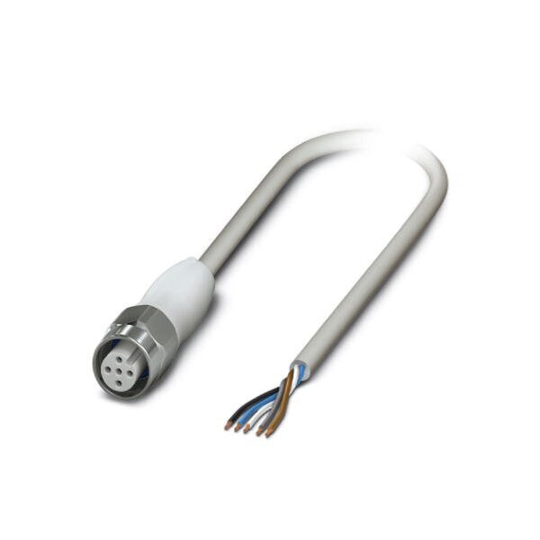 Sensor/actuator cable 5-position PP-EPDM halogen-free gray RAL 7035 free cable end on Socket straight M12 coding: A cable length: 3 m Hygienic design with high-grade steel knurl
